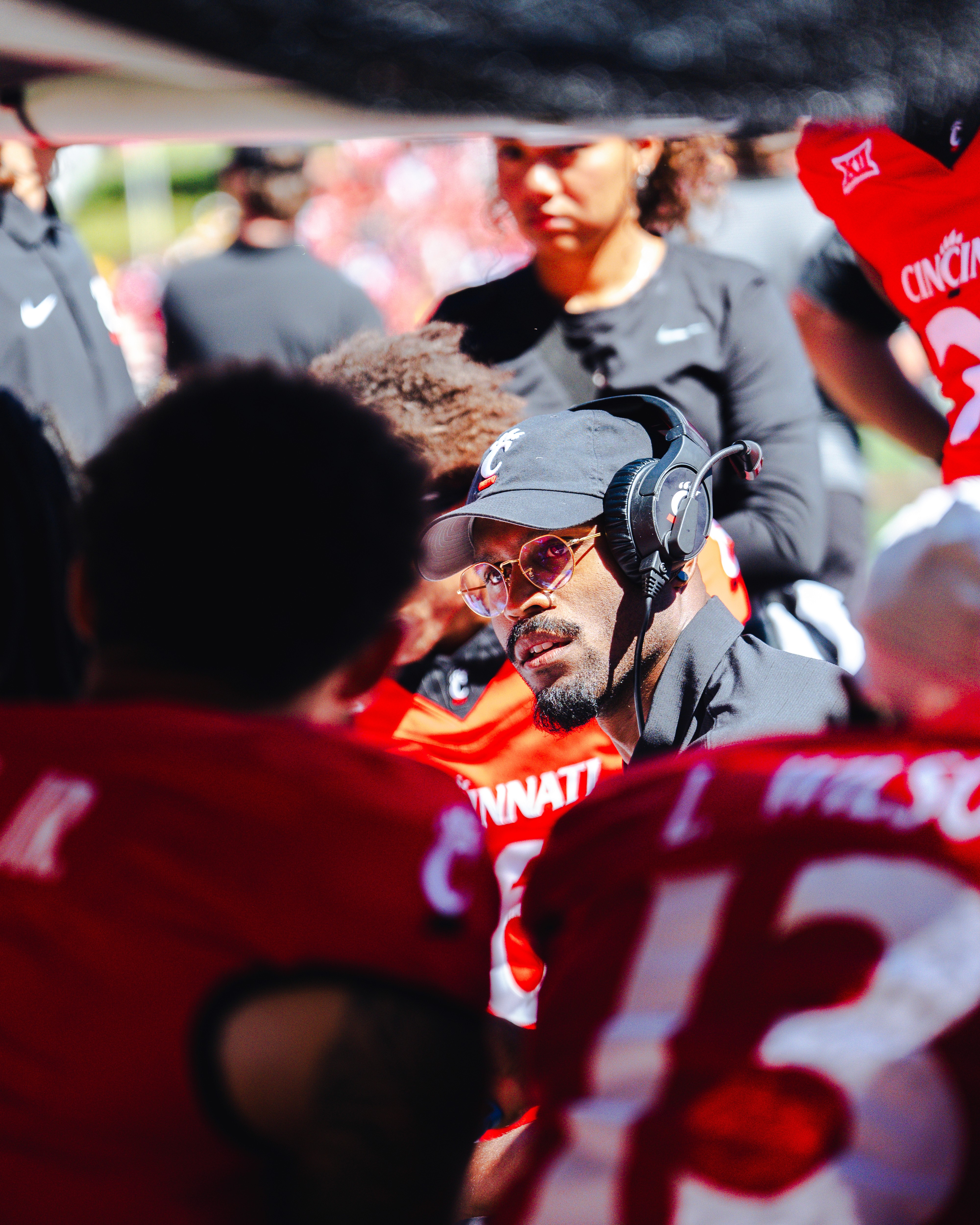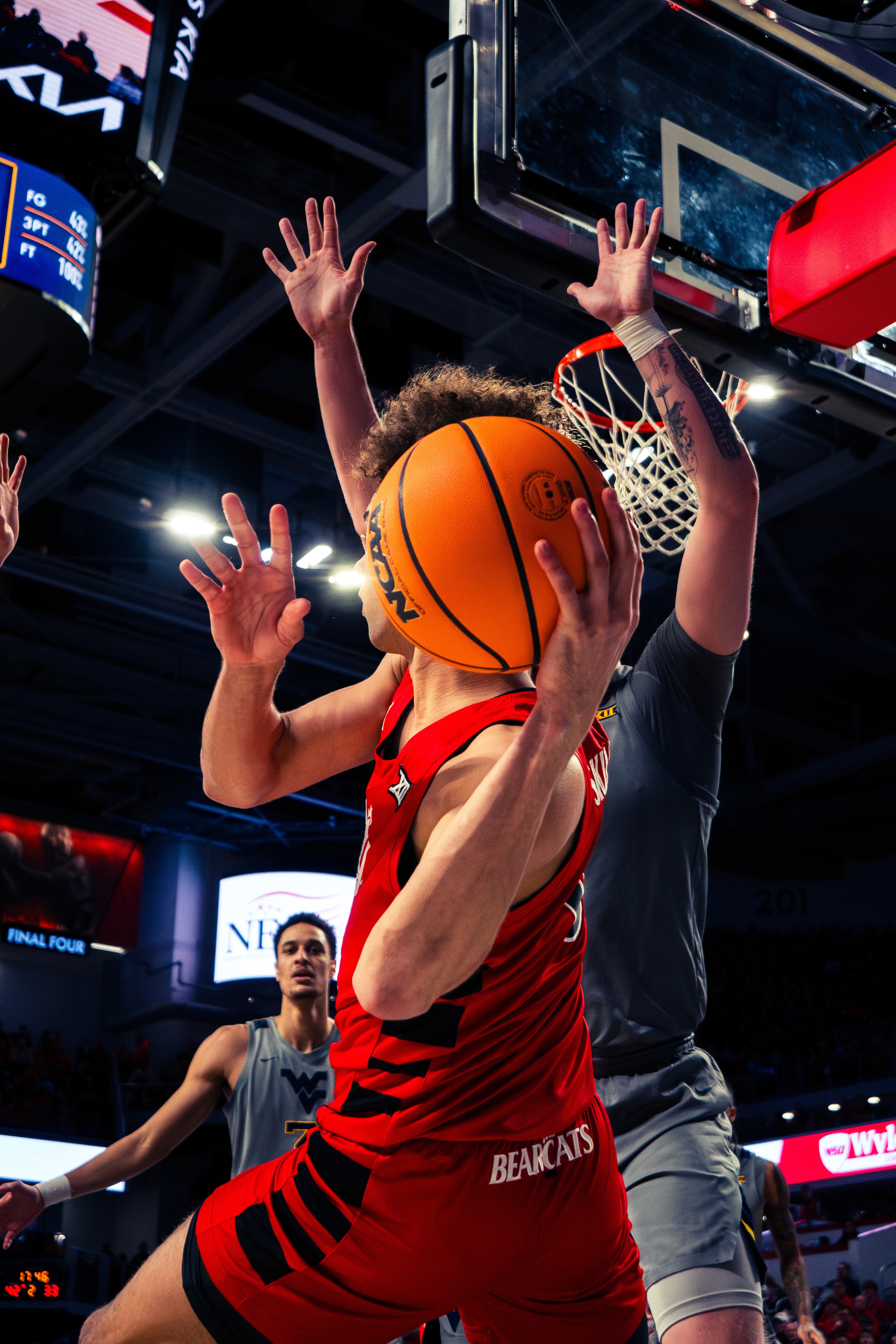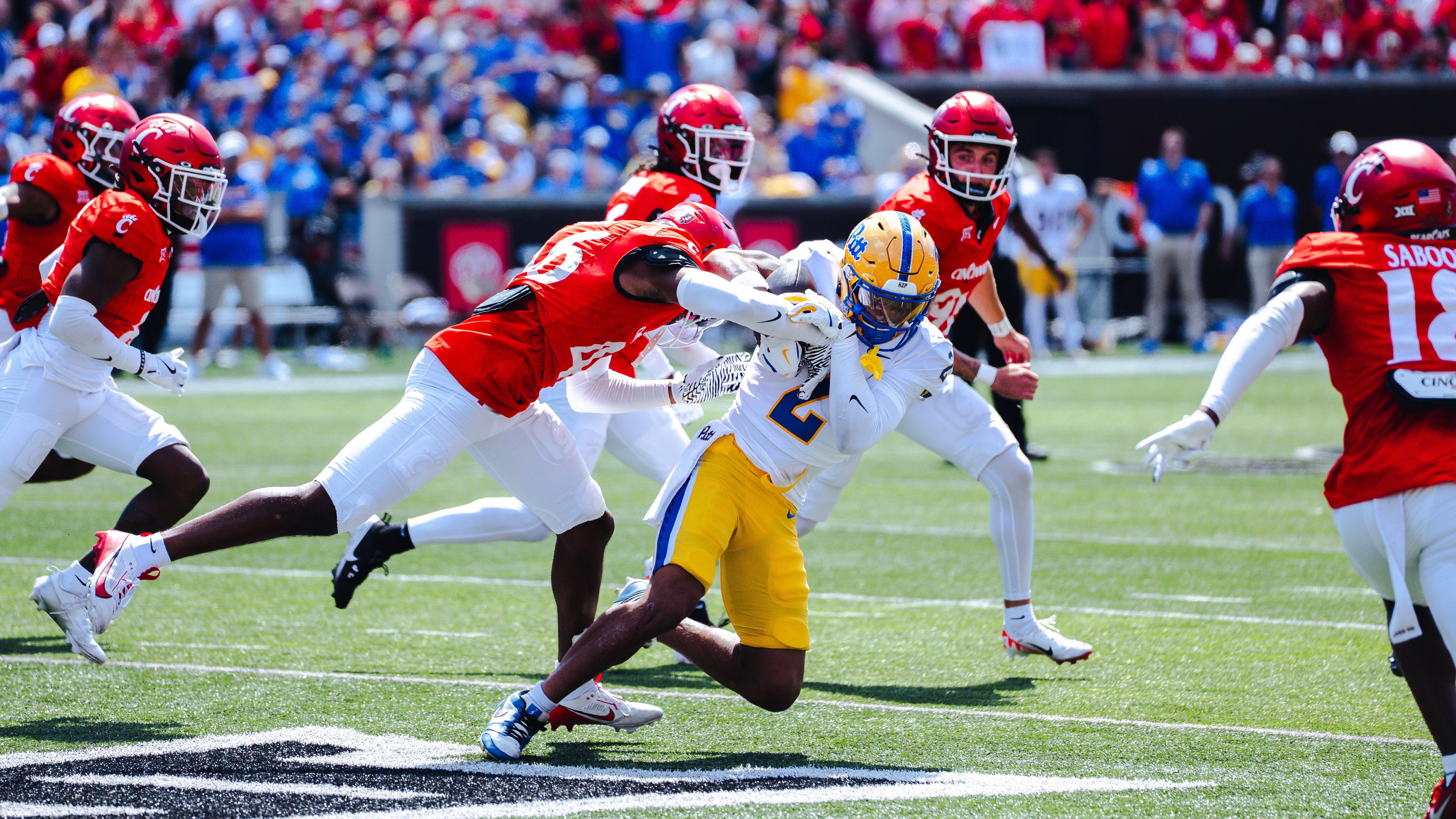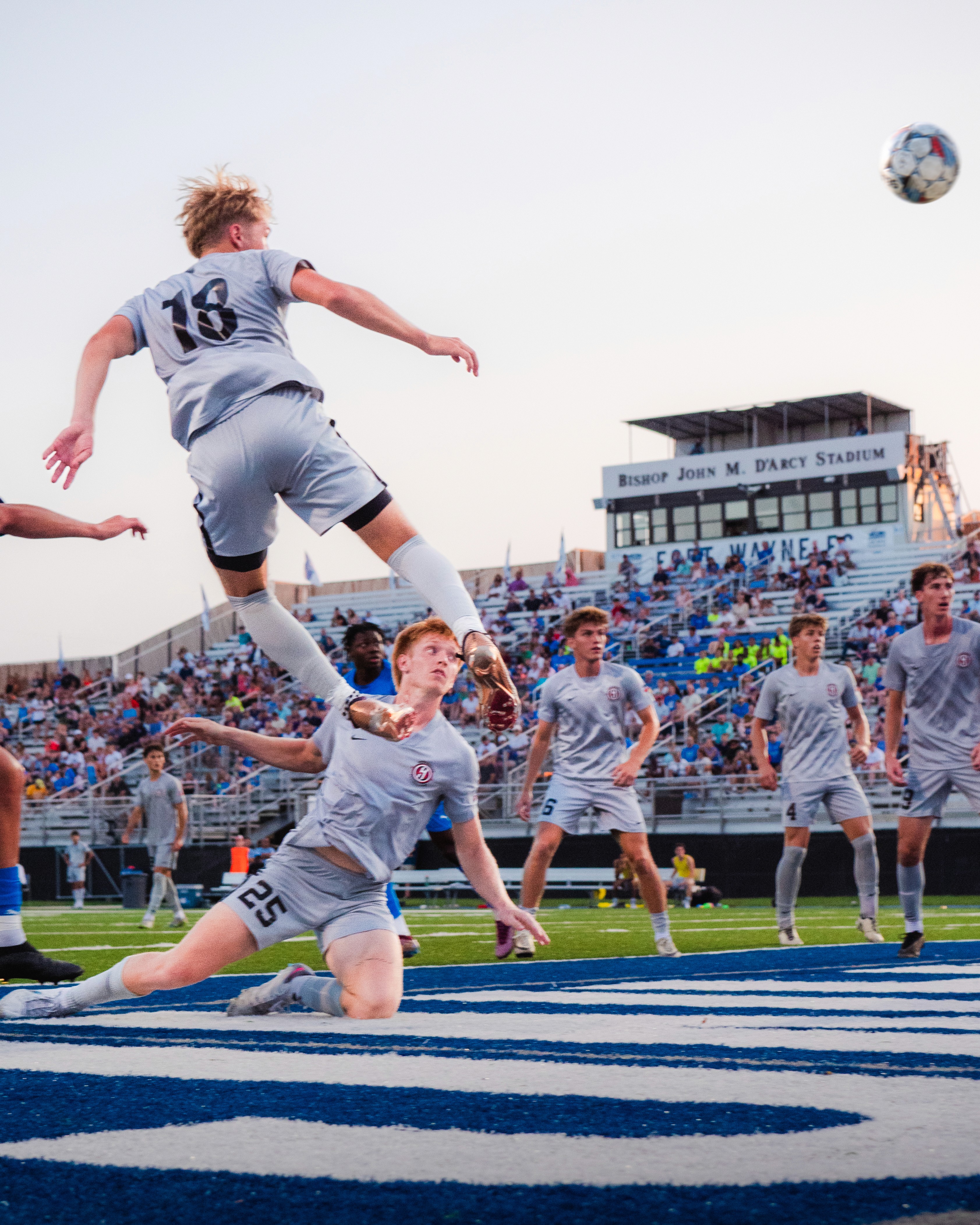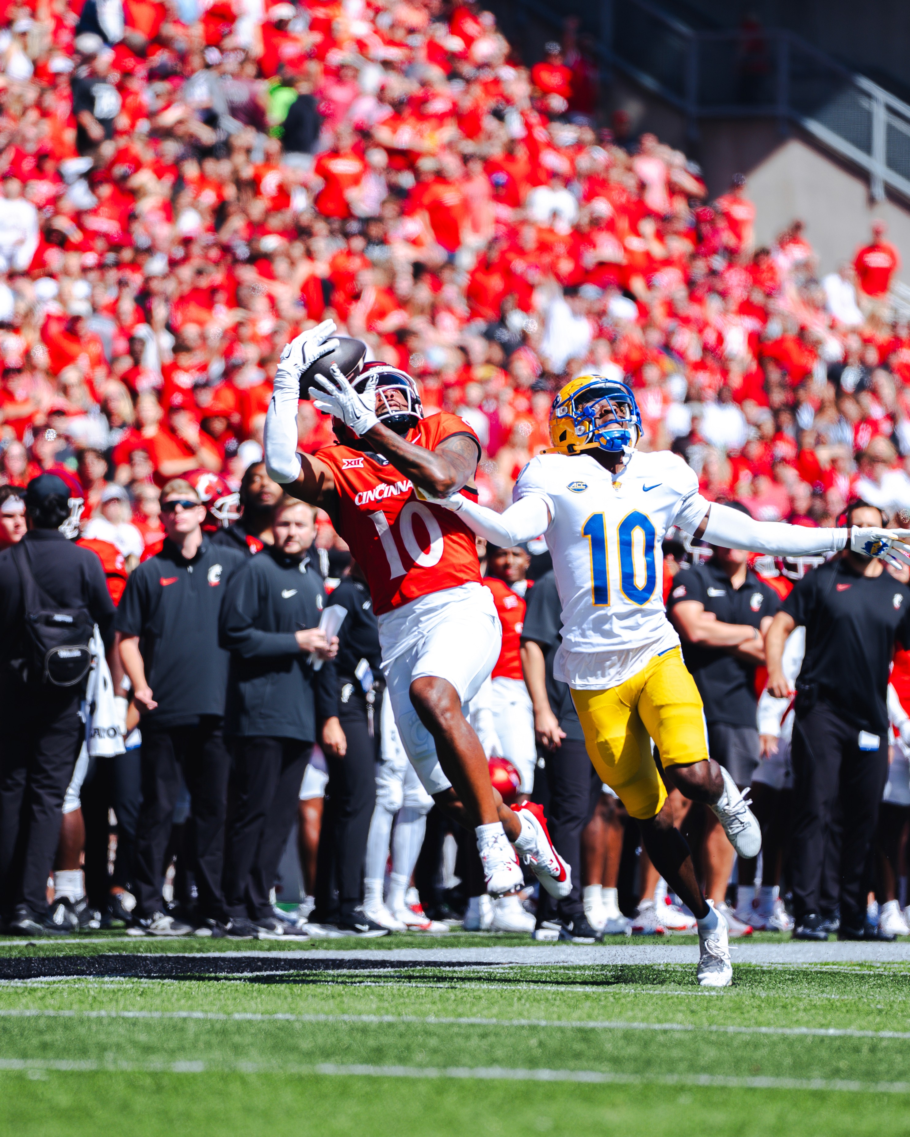 A collection of sports photographs capturing motion, intensity, and game-day atmosphere.